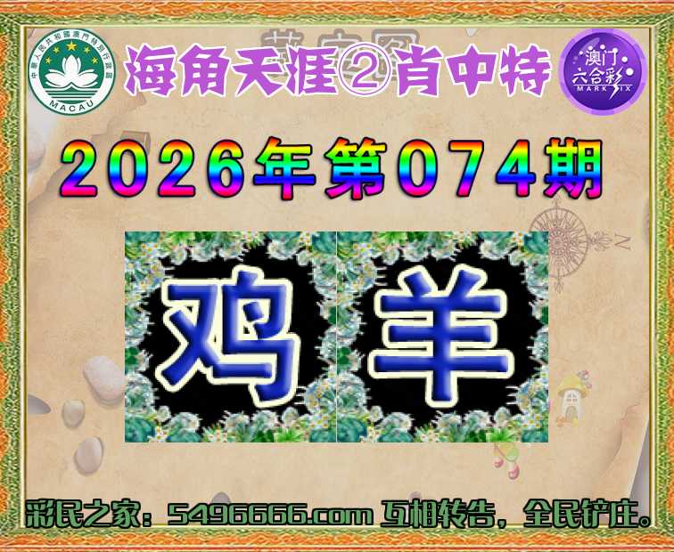 074期:【海角天涯】 😳②肖中特😳【鸡.羊】开:00准