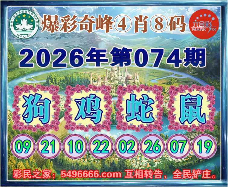 074期:《爆彩奇峰》 🍟④肖⑧码🍟【狗鸡蛇鼠】开:00准